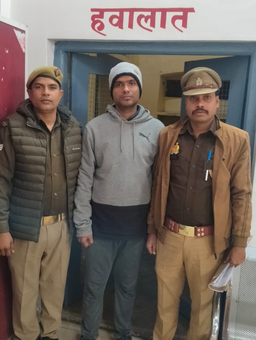 जौनपुर उतर प्रदेश प्रभारी निरीक्षक थाना कोतवाली के नेतृत्व में थाना पुलिस टीम द्वारा थाना स्थानीय पर पंजीकृत मु0अ0स0 15/2026 धारा 69/352/351 (3) बीएनएम से सम्बन्धित वांछित अभियुक्त रिशि शुक्ला पुत्र हनुमान प्रसाद शुक्ला निवासी मानिक चौक रासमण्डल थाना कोतवाली जौनपुर को मुखबिर खास की सूचना पर भण्डारी तिराहे स्टेशन के पास से कारण गिरफ्तारी बताते हुये नियमानुसार हिरासत पुलिस मे लिया गया। गिरफ्तारी के दौरान माननीय सुप्रीम कोर्ट तथा मानवाधिकार आयोग के आदेशों निर्देशों का अक्षरशः पालन किया गया। गिरफ्तार अभियुक्त को सम्बन्धित मा० न्यायालय भेजा गया ।*नाम पता अभियुक्त-*01.रिशि शुक्ला पुत्र हनुमान प्रसाद शुक्ला निवासी मानिक चौक रासमण्डल थाना कोतवाली*गिरफ्तार करने वाली पुलिस टीम-*1.उ0नि0 जयदीप कुमार चौकी प्रभारी भण्डारी थाना कोतवली जौनपुर2-हे0का0 शमीम अख्तर थाना कोतवाली जौनपुर3-का0 अरुण यादव थाना कोतवाली जौनपुर