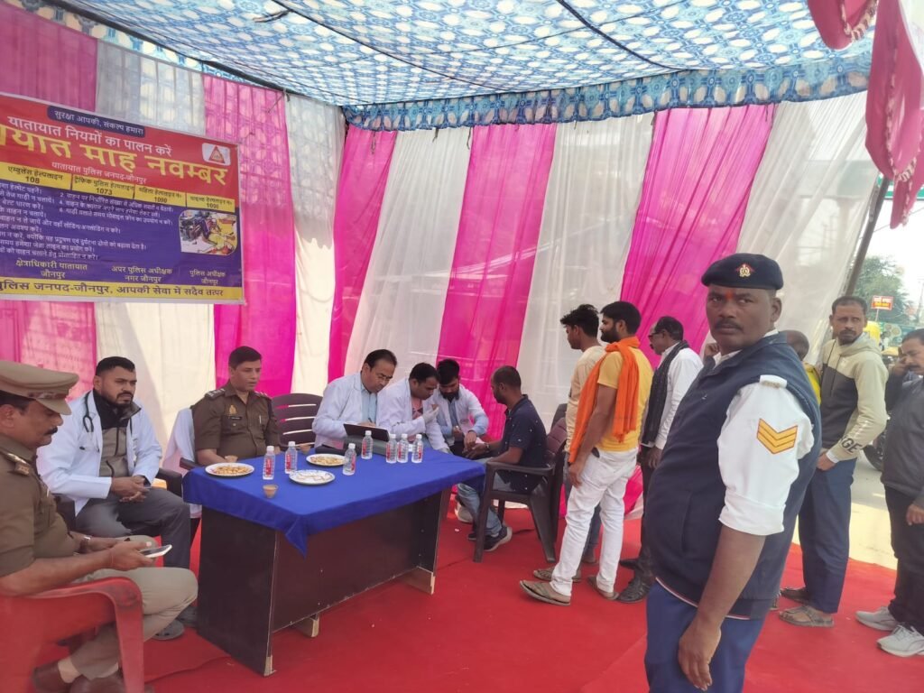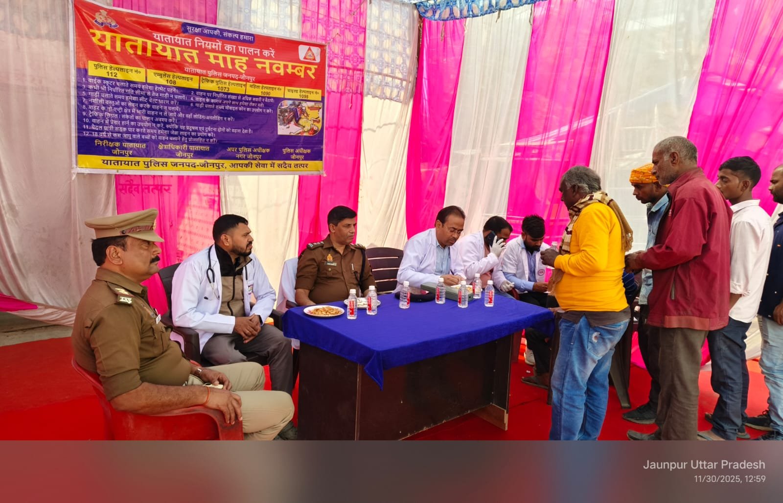 जौनपुर_उतर प्रदेश “यातायात माह नवम्बर 2025 के अंतर्गत पुलिस अधीक्षक जौनपुर के निर्देशन में वाजिदपुर तिराहा पर एक स्वास्थ्य शिविर आयोजित हुआ जिसमें शिविर में जिला चिकित्सालय जौनपुर के चिकित्सकों द्वारा बस, पिकअप, टैक्सी, ऑटो ई-रिक्शा के चालकों,