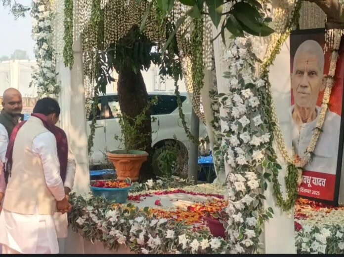 जौनपुर के समसपुर पनियरिया गांव में मध्य प्रदेश के मुख्यमंत्री मोहन यादव सोमवार को राज्यमंत्री गिरीशचंद यादव के घर आयोजित तेरहवीं में शामिल होकर उनके दिवंगत पिता स्वर्गीय सवधु यादव को श्रद्धांजलि अर्पित की और। श्रद्धांजलि के बाद मुख्यमंत्री ने घर के अंदर दिवंगत सवधु यादव की माता रजपत्ती सहित परिजनों से मुलाकात की। उन्होंने परिवार को सांत्वना दी। लगभग आधे घंटे तक परिजनों से मिलने के बाद मुख्यमंत्री बाहर आए और भीड़ तथा कार्यकर्ताओं का अभिवादन किया। उन्होंने पंडाल में उपस्थित लोगों और जनप्रतिनिधियों से भी बातचीत की और कुछ लोगों के साथ सेल्फी भी खिंचवाई।मुख्यमंत्री ने एक संक्षिप्त प्रेस वार्ता में कहा कि वह महाकाल की धरती से बाबा विश्वनाथ की धरती पर आए थे। उन्होंने मीडिया के अन्य सवालों का जवाब दिए बिना प्रस्थान कियामुख्यमंत्री मोहन यादव इसके बाद सीधे अपनी फॉरच्यूनर कार से हेलीपैड स्थल के लिए रवाना हो गए। और दोपहर लगभग 2: बजे वह हेलिकॉप्टर से वाराणसी एयरपोर्ट के लिए प्रस्थान कर गए। हेलीपैड पर उन्होंने भाजपा के कई नेताओं, जनप्रतिनिधियों और विधायकों से मुलाकात की। इस दौरान पुलिस व्यवस्था पूरी तरह चाक-चौबंद रही और किसी प्रकार की अव्यवस्था नहीं हुई। मुख्यमंत्री ने राज्यमंत्री गिरीशचंद यादव से व्यक्तिगत रूप से बात कर उन्हें सांत्वना दी और दुख व्यक्त किया।इस अवसर पर जिलाधिकारी दिनेश चंद्र सिंह, एसडीएम सदर, विधायक रमेश सिंह, विधायक रमेश मिश्रा, जिलाध्यक्ष अजीत प्रजापति, पूर्व अध्यक्ष हरिशंकर हरिश्चंद्र सिंह, नगर पालिका अध्यक्ष मनोरमा मौर्य, कई नेताओं रहे मौजूद